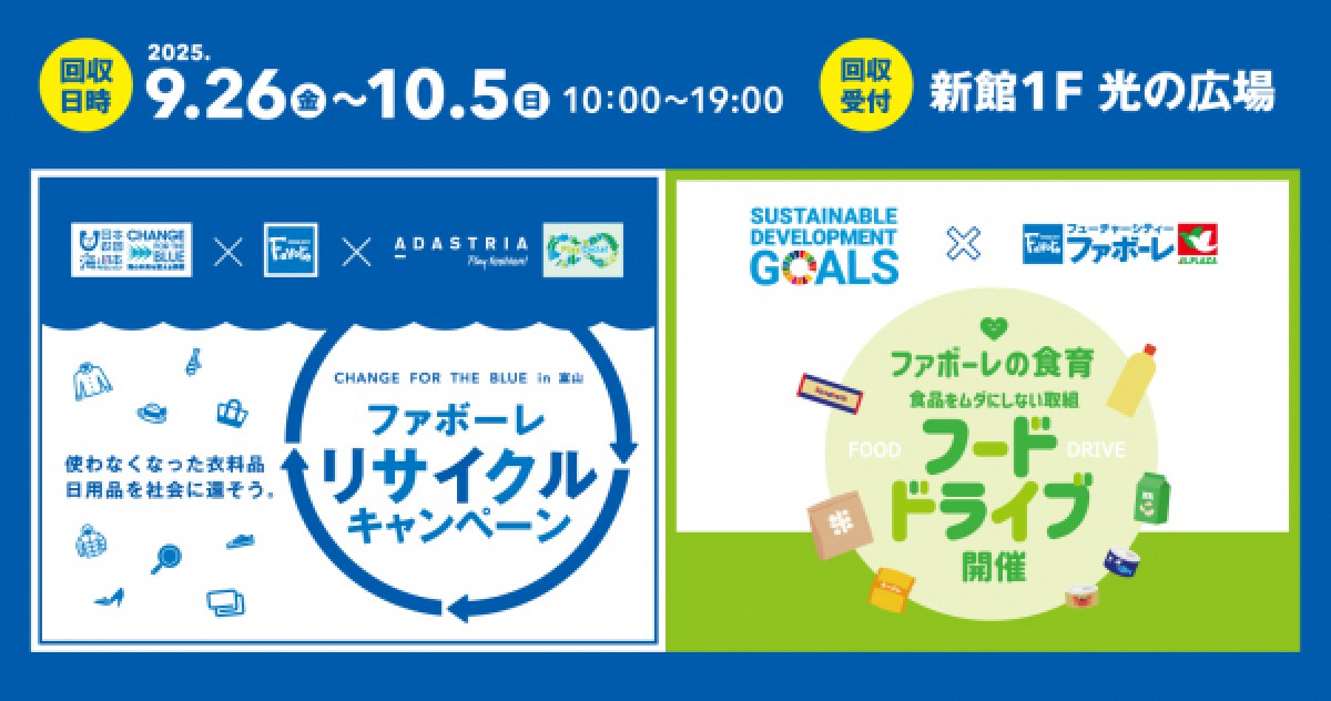 【9/26(金)~10/5(日)】CHANGE FOR THE BLUE in TOYAMA 第11回ファボーレリサイクルキャンペーン&フードドライブ | イベント&ニュース
